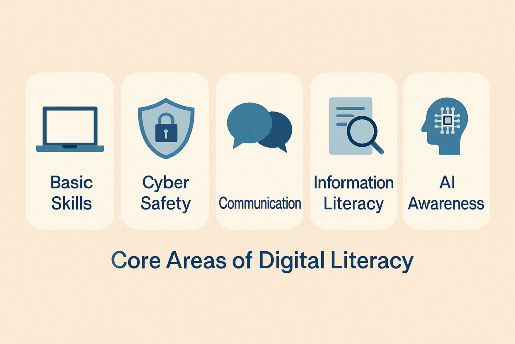 There was a time when learning MS Word or typing on a keyboard was a big deal. Now? That’s just the starting line. Digital literacy skills have expanded way beyond clicking icons — they cover social media awareness, using online payments safely, and even knowing what’s fake news.
